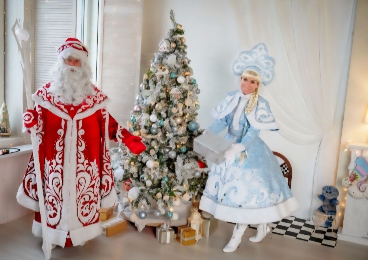 Классическая команда Дед Мороза и Снегурочки. Затаив дыхание Вы попадаете в музыкальную, мультимедийную сказку. У этой команды с собой не только реквизит для игр, а также и флешка, которую надо вставить в телевизор, и там начнёт вешать канал Деда Мороза!